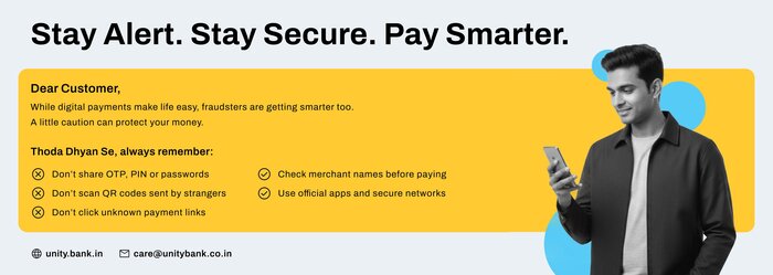 Your money is safe with us, protected by robust IT infrastructure and multi-factor authentication. Also, deposits up to Rs 5 lakhs are insured by DICGC.